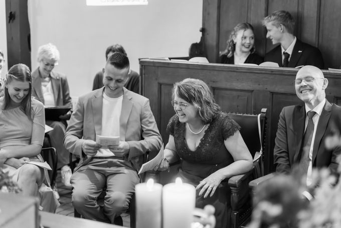 Terwijl ik me richt op jullie en de momenten dichtbij, legt hij de reacties van familie vast, de sfeer in de ruimte of het overzicht van de ceremonie. Zo missen jullie niets, zonder dat het onrustig voelt.